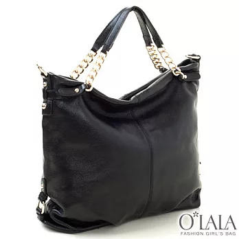 【O'LALA】真皮時髦輕搖滾垂墜感三用包(時尚黑)