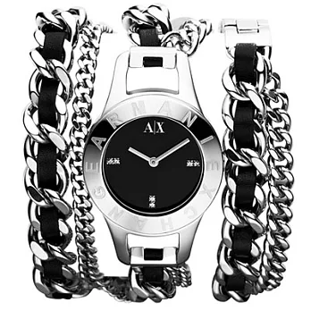 介紹一個好東西叫A│X Armani Exchange 唯美龐克晶鑽時尚腕錶(鋼帶-銀黑)