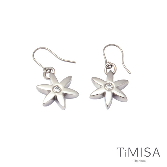 TiMISA《花漾年華-晶鑽》純鈦耳勾(一對)-白