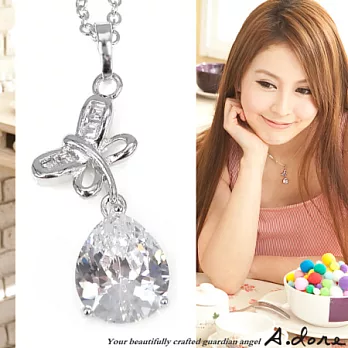 介紹一個好東西叫【A.dore】蝴蝶舞翩翩 ̇梨型璀璨晶鑽項鍊-銀白K