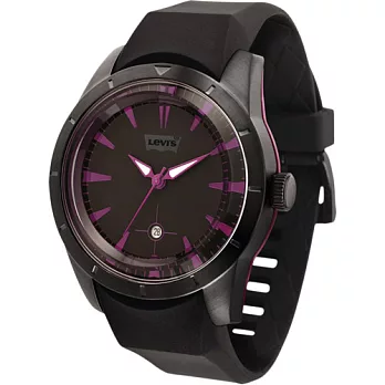 LEVI’S 中性風時尚腕錶-黑×紫/43mm