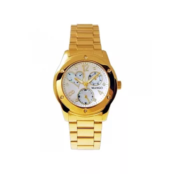 MANGO 魅麗銀河三眼不鏽鋼仕女腕錶-金