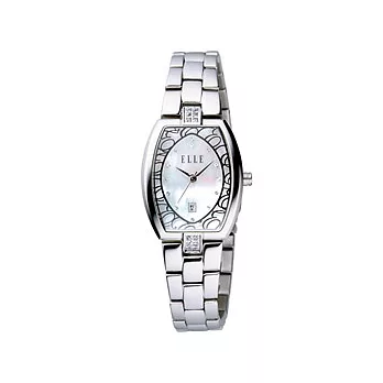 ELLE 夢幻花園時尚腕錶,酒桶型設計的錶頭使其充滿知性都會感,利用簡約俐落的亮面不鏽鋼材質打造、加上錶耳上的晶鑽鑲崁點綴,使整體錶款充滿出色迷人的品味。