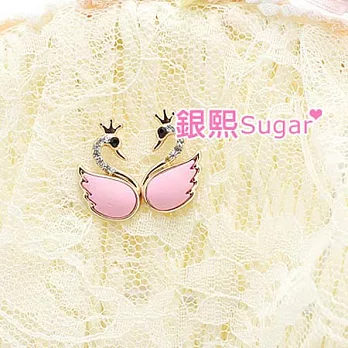 介紹一個好東西叫【銀熙】相依相偎 愛心天鵝水鑽耳環(粉紅色)