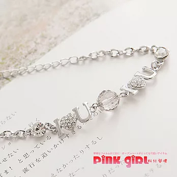 【pink girl】心動氛典.I LOVE U心鑽亮飾晶球手鍊散發出與眾不同的獨特銀飾設計